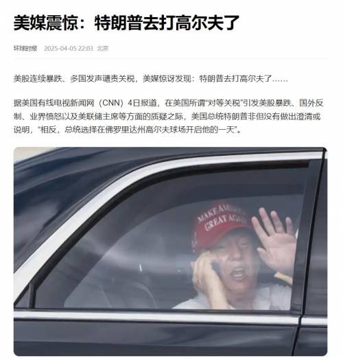 特朗普看到了美国与中国打关税战的艰难。但问题是,美国连续暴跌,多国发声谴责的时候,特朗普能坚持……去打高尔夫,但美国消费者坚持不住了。