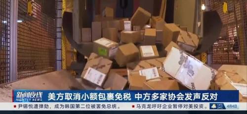 除了对中国的普遍关税以外,还取消了中国小额包裹的免税待遇。