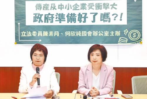 民进党立委陈素月(左)、何欣纯(右)3月7日举办记者会,建议由蔡英文,或是派萧美琴领军赴美谈判