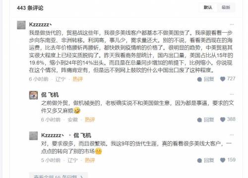 在知乎,关于“美方威胁进一步对华加征 50% 关税”的话题下,点赞最多的,是一个外贸从业者的发言。