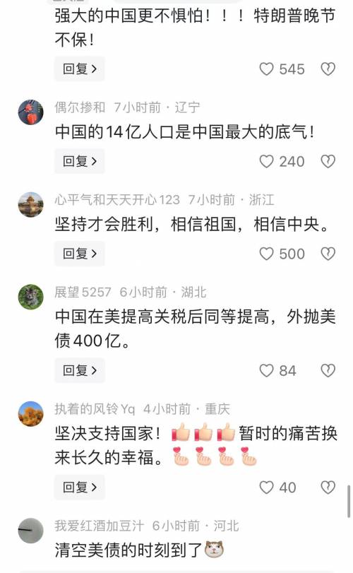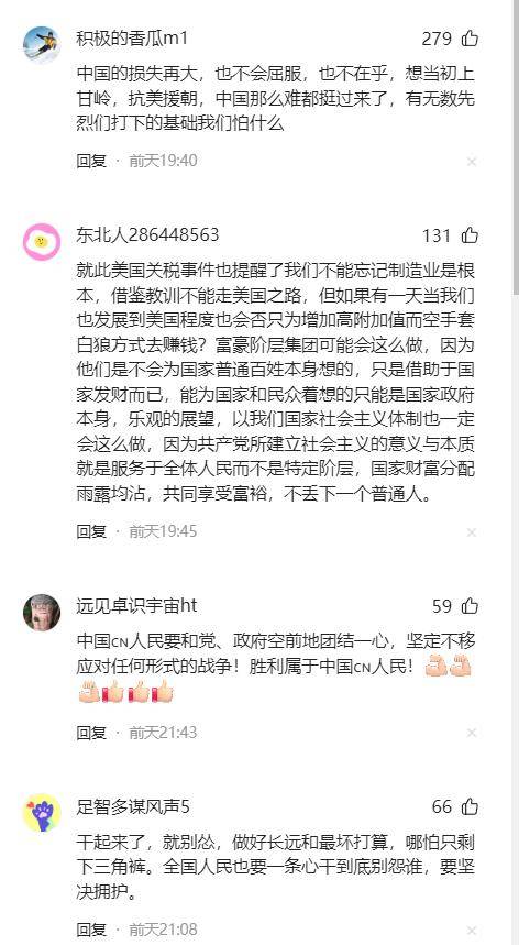 反之中国消费者却没有被美国的关税战影响,反而表现出了空前的团结,特朗普也点燃了国人的怒火,从互联网舆论来看,中国上下一条心,主流舆论都是坚决站在国家一边,支持国家反制。国人彻底凝聚起来了。