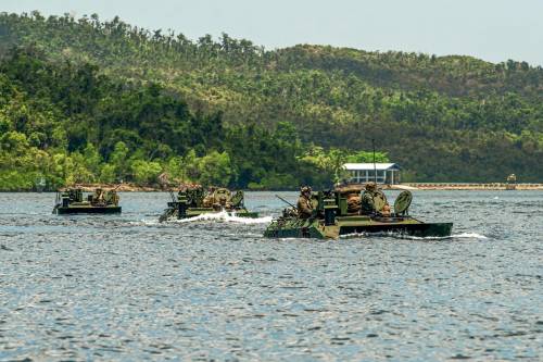 美军虽然还在逞能,但可能也蹦Q不了多久了,其正在将部分的关键设施从第一岛链附近撤出,而且为了避免战事日本、菲律宾等处的基地被中国摧毁在地面上,已经在进行所谓的“分散部署”,这是一种将美军的作战单位尽可能分散,包括将一些重要的资产部署于偏远岛屿的逻辑,以提升生存能力,在战时迅速集结利用航母进行力量投射、作战。这造成了美军对第一岛链的失守,中国已经开始进行远洋航行,通过菲律宾附近的海峡前往澳洲附近实弹演练。