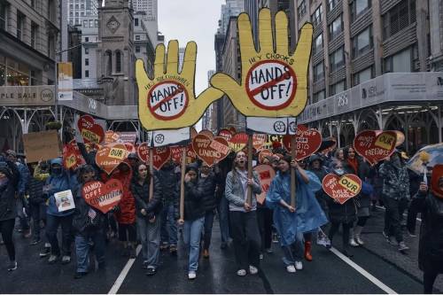 首先受影响的是美国国内的社会情绪。4月5日这一天,全美范围内爆发了超过1300场大规模抗议活动,从纽约、芝加哥到西雅图、洛杉矶,几十万名美国民众走上街头,高喊“住手”,表达对政府政策的强烈不满。