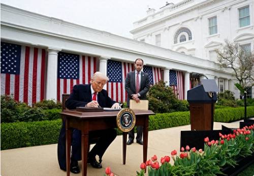 4月2日,他签署了一项行政命令,对全球商品统一加征10%的普遍关税,并特别针对不同国家设置了所谓“对等关税”制度。