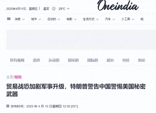关税到145%后,眼看着中国仍不低头,甚至不愿意再搭理他,特朗普急了。甚至公然向中国发出了战争威胁,声称美国依然有“秘密武器”,暗示没有还有一些处于机密状态而仍不为人知的“强大武器”。印度媒体oneindia转载了这一说法,认为随着中美的竞争越来越激烈,局部地区热战的可能性在增加,这将对全世界造成重大影响。