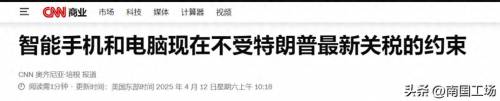 截止美国当地时间2025年4月12日,美国媒体ABC、彭博社、国会山、政客、经济学人等多家媒体均报道了,美国总统特朗普已免除智能手机、电脑和其他电子产品的关税。按照美国媒体的报道,美国海关及边境保护局发布了最新关税说明,宣布免除智能手机、电脑、电子产品等对等关税。据悉,特朗普政府此举旨在保护美国消费者免受“价格暴涨冲击”。美国全国广播公司商业频道报道称,很多手机等许多电子产品都在中国生产,而这份豁免条款中,虽然没有明确提及特别针对中国内容,但这也意味着来自中国制造的智能手机、电脑、电子产品等,不会被美国当局征收145%的关税。