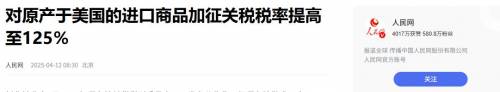 中方将对美关税由84%提升至125%