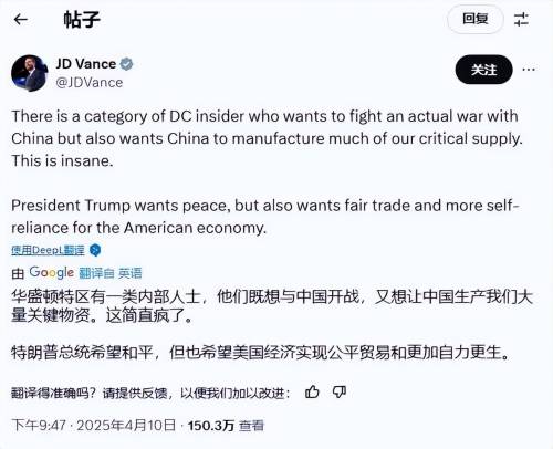 万斯赶紧跳出来打圆场,嚷嚷着特朗普压根没想跟中国开战。可谁信呢?