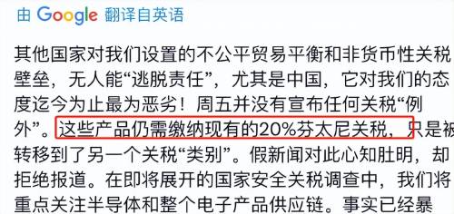 而特朗普也是再次窝囊的生了个气,他自己在社交账号上表示“我没有给予任何例外,电子产品也并非完全豁免,也需要缴纳20%的关税”。