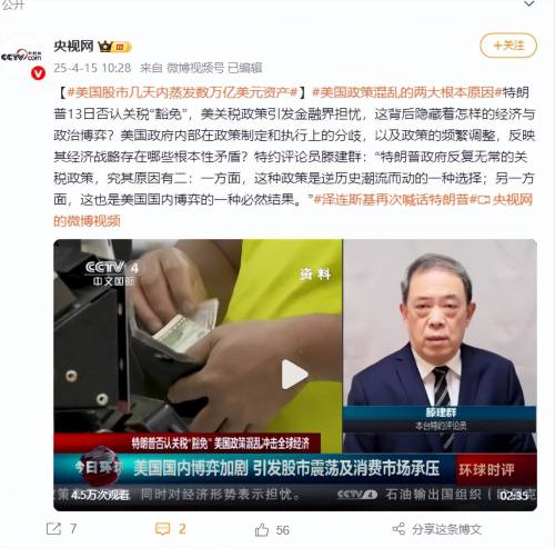 面对美国发起的贸易霸凌,国务院迅速发布公告,宣布对美国商品征收同等的125%关税。