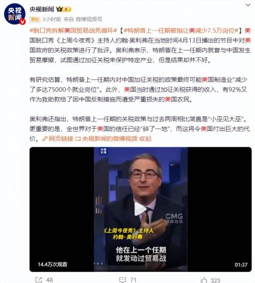 在近日的一档节目里,美国著名主持人对美国的关税政策发起了猛烈抨击。