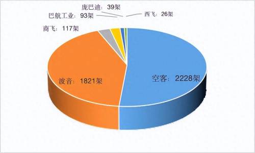 从民航最新数据来看,中国国内运营的商用飞机规模达到了4324架,空客和波音两大巨头占据绝对优势地位,在运营的空客飞机数量2228架,波音以1821架的保有量紧跟其后。