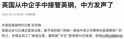 4月12日,美国无脑对华加征145%关税的第二天,英国议会突然召回议员表决通过了一项国家紧急法案,以国家名义逼迫中国民企敬业集团让出英国钢铁公司的控制权。