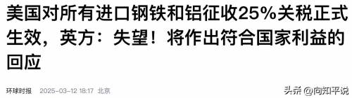 3月12日美国全球各国出口到美国的钢铁,一律按25%额外关税征收,这对于本就衰落的英国钢铁产业来说,无异于一次致命的打击。