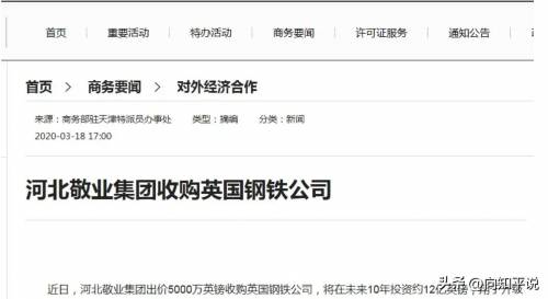中国敬业集团控股的英国钢铁公司到底有何特别之处?为何让英国搭上“国家信用”收归国家控制呢?