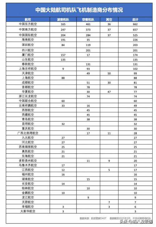 截至2025年,中国仍有14家航司以波音为主力机型,厦门航空90%的机队为波音飞机。