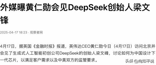 同一天根据国内媒体援引《金融时报》曝光,黄仁勋在当天下午还去跑了一趟DeepSeek的总部,专门见了创始人梁文峰。