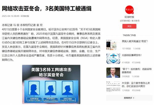 同时,中国针对美国的渗透行为采取了有力措施,黑龙江省哈尔滨公安局通缉参与境外网络攻击 “2025年哈尔滨第九届亚冬会” 的三名美国国家安全局犯罪嫌疑人,这一行动向美国传递了两个关键信息: