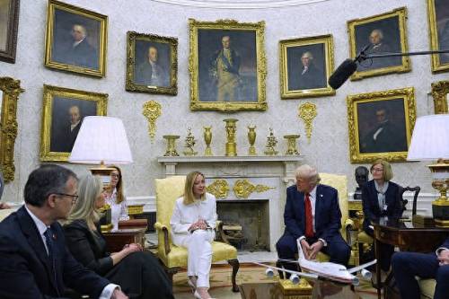4月17日,特朗普在白宫会见意大利总理梅洛尼。 视觉中国