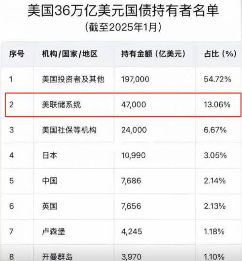 搞笑的是80%的私人持股中一大部分还不是美国人自己拿着的,而是隔壁的欧洲人......