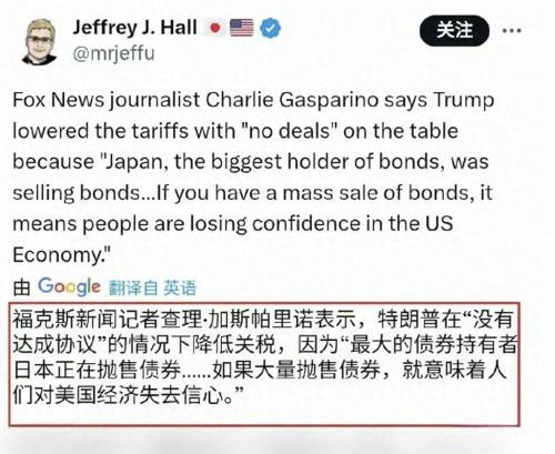 后来复盘发现,根源还是因为关税战,日本的某投资机构因为川普贸易战政策,引发了美股持仓暴跌,不得已从美债平仓补窟窿。至于说中国有没有抛售,目前美国是极力否认的。