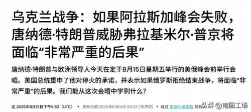 这一次阿拉斯加会晤,估计谈不出来什么结果,光说乌克兰领土,去军事化,去纳粹化,乌克兰不加入北约才是根本问题。这是西方赢学刻意规避的话题。俄罗斯不太可能停战,一是目前战场上俄方已经掌握了主动权,不太可能会放弃这一优势。二是即使现在停战,双方已经结下血仇了 彼此都不相信能和平共处,只会日后择机继续开战,而俄罗斯军队在乌克兰武装部队损失巨大,俄罗斯国力也损失,外海的俄罗斯大量利益也被损失,俄罗斯在世界的威信严重受损,急需彻底消灭西方势力,然后重返中东中亚,要不如果贸然停战,那就是俄罗斯战败。