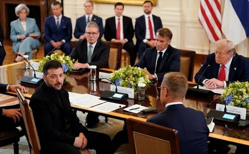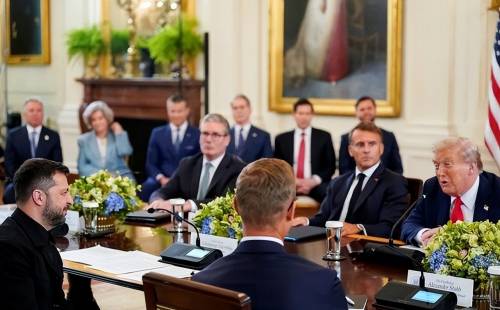 特朗普刚上台没多久,就在2025年8月18日白宫搞了这么一场会晤。特朗普一个人面对乌克兰总统泽连斯基加上七个欧洲大国的领导人,这阵势外界一看就觉得是场摊牌。泽连斯基带着德国总理弗里德里希·默茨、法国总统埃马纽埃尔·马克龙、英国首相基尔·斯塔默、意大利总理乔治娅·梅洛尼、芬兰总统亚历山大·斯图布、北约秘书长马克·吕特和欧盟委员会主席乌尔苏拉·冯德莱恩,这些人齐刷刷地来华盛顿,目的就是谈俄乌冲突怎么收场。 特朗普这边呢,没带什么帮手,就他自己坐那儿,感觉像是在用交易方式平衡各方利益。