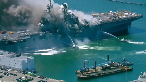 由于现场视频画面都不清楚,谁也不知道到底是怎么一回事——但就算是咱们以最乐观的情况估计,“新奥尔良”号舰体内部的火已经被灭了、但是从“新奥尔良”号的行动轨迹来看,这把火大概率是从20日中午左右烧起来的,毕竟昨天中午1点两艘消防船已经赶到了,如果当时没着火,谁也不会吃饱了撑的、把这两艘消防船摇过去喷水降温。