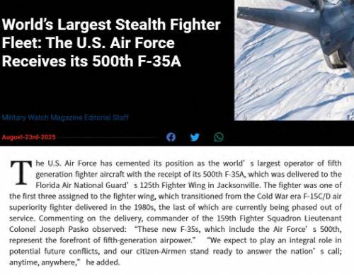 ▲500架F-35A确实不可小觑