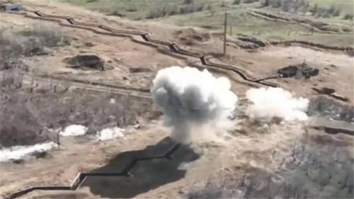 (为了给支援部队争取时间,俄军苏-34升空,倾泻大量弹药,重创乌克兰反扑大军)