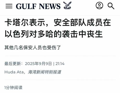 另外卡塔尔通报,其国内安全部队一名中校在以色列空袭中遇难,还有几名其他安保人员受伤。