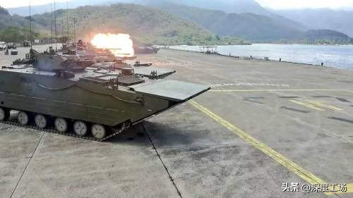 美军M1A2坦克,M2布拉德利步兵战车没有渡水登陆能力。美国海军陆战队可以投入抢滩的就只有,薄皮大馅,火力薄弱的AAV-7两栖装甲车,LVTp履带式两栖车,以及EFV两栖远程车辆。基本配置就只有12.37毫米机枪,7.62毫米机枪。