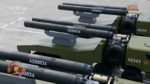 而AJX002所能携带的智能水雷,此次9·3大阅兵上也有展示。水下兵器方队中的AQS003A智能水雷应该就是AJX002的可用武器之一,它类似美军的CApTOR智能水雷,能够通过声呐传感器来识别判断目标,将其布设在关键航道上,它就能自主实施攻击。