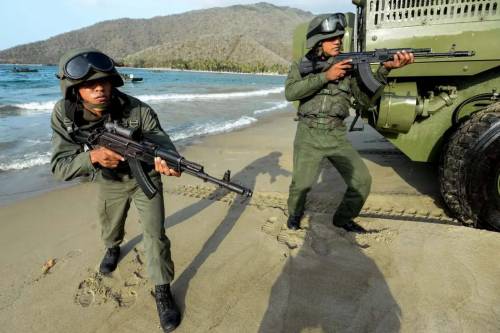 面对美国的大军压境,马杜罗政府毫不畏惧,立即宣布启动“国家主权保卫计划”,紧急动员450万民兵,并部署了从中国进口的VN18两栖战车和C802A反舰导弹,现在又出动了VN16两栖战车和VN1步兵战车。