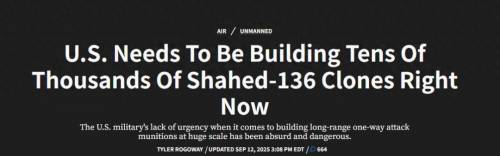 但“想法很美好,现实很骨感”,美媒发现,美国当前根本没有能力组织快速大批量生产这样的自杀无人机,尤其是廉价复合材料机翼、基本飞行控制系统和小型且相对粗糙的内燃机——就连乌克兰组装的此类无人机都需要“中国货源”。