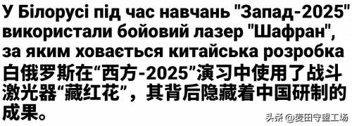 根据乌媒在2025年9月16日的报道中称,白俄罗斯在演习中展示的激光武系统代号为“藏红花”,其背后是中国开发的技术。