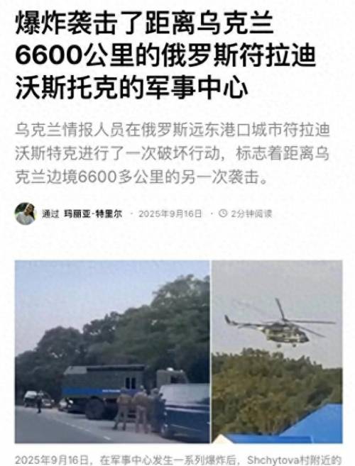 9月16日,乌克兰军事情报部门公开承认,对俄罗斯远东城市海参崴发动了远程打击。