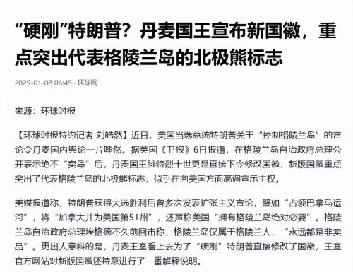 与此同时,丹麦王室在新年伊始更新国徽,把象征格陵兰岛的北极熊单独摆出来。