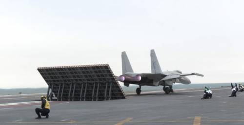 【歼-15T舰载机弹射起飞】