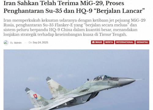 在以色列空袭卡塔尔后,掀起的巨浪遮蔽了原本饱受关注的伊朗。就在大家以为其真的已经认命时,突然传出了伊朗从中俄采购先进装备的消息。9月24日,“Defence Security Asia”网站援引伊朗议员Zohrevand的说法,称“伊朗已经收到俄罗斯交付的米格-29,并且还在等待更先进的苏-35S和我军某型地空导弹E交付”。