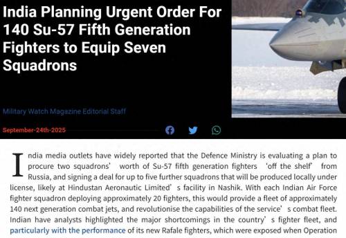 印度空军向国防部递交采购方案,准备以超过220亿美元买下114架“阵风”,掀起的舆论漩涡仍未结束,美国“Defence-Blog”、“Military Watch”等网站,又援引印度媒体消息,称印度采购苏-57E的新方案已经出炉。