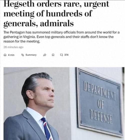 近日,美国国防部长赫格塞思一纸密令,让分散在全球的近千名美军高级将领火速赶往弗吉尼亚州海军陆战队基地。