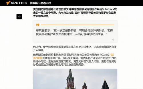 布莱恩的理由是:使用这种武器需要美军驻扎在乌克兰领土上,这意味着美国将直接介入冲突。