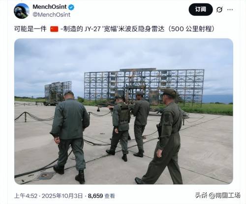 发现5架美军F-35隐身战斗机的行踪,这已经不是委内瑞拉手里的JY-27反隐身雷达第一次立功了,2020年,委内瑞拉军方就宣布,委内瑞拉防空部队追踪到正在接近的F-22隐形战斗机。据报道,委内瑞拉使用中国 JY-27 远程在其领空附近追踪美军F-22猛禽战斗机。委内瑞拉防空军装备了了S-300VM、山毛榉、道尔、萨姆-3等防空导弹,可以与JY-27反隐身雷达系统共享数据。显然委内瑞拉军方用自己的实战,告诉美国当局,美国总统特朗普,美军高层,委内瑞拉已经锁定了美军F-35隐身战斗机,如果美军敢打,击落美军F-35、F-22隐身战斗机不在话下!