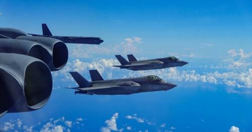 ▲为B-52H护航的F-35B