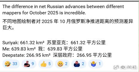 不同的地图绘制者对 2025 年 10 月俄罗斯领土收益的统计差异巨大。