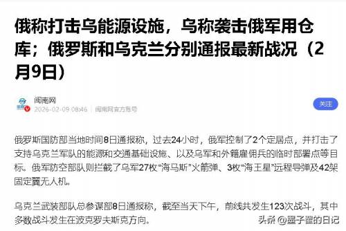 乌军这边也没认输,乌克兰武装部队总参谋部在2月8日下午前,也发布了最新通报,说前线一共发生了123次战斗,几乎是全天不间断交火,而其中大部分战斗,都集中在波克罗夫斯克方向。
