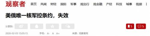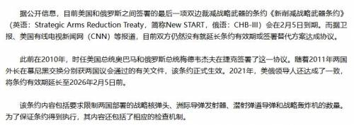 就在半个月前,2月5日,美俄之间最后一项有效的双边核军控协议——《新削减战略武器条约》正式失效。