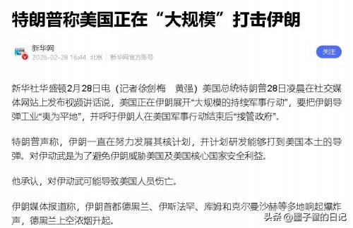 特朗普突然官宣,美军正在伊朗境内展开大规模持续军事行动,扬言要把伊朗的导弹工业彻底夷为平地,甚至公然呼吁伊朗人等行动结束后“接管自己的政府”。
