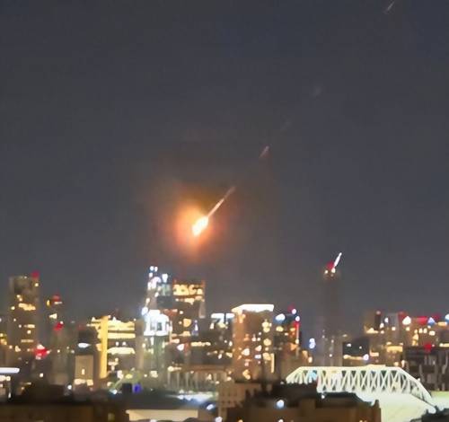 这是一枚正在飞向特拉维夫的导弹,以色列防空系统发射了三枚导弹都没有将它拦住,可以看到这枚导弹在末端明显变了一次轨,伊朗方面宣称,他们动用了高超音速导弹。